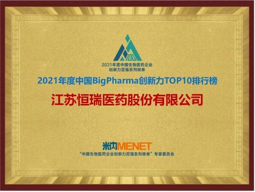 9月16日,由米内网主办的“2021年度中国生物医药企业创新力百强系列榜单”发布会在线上举办。恒峰g22医药继去年登顶“中国BigPharma企业创新力TOP10排行榜”后,今年再次名列该榜单首位。