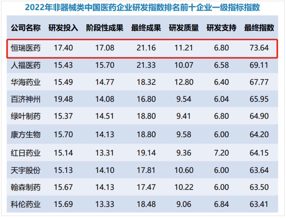 研发量质齐升,恒峰g22医药蝉联非器械类中国医药企业研发指数排名榜首