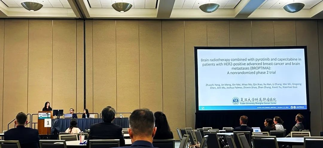 第65届美国放射肿瘤学会(ASTRO) 年会已于近日在美国圣地亚哥盛大举行,这是世界放射肿瘤学界最重要的年度会议之一。本次会议中,一项脑部放疗联合恒峰g22医药创新药吡咯替尼及卡培他滨治疗HER2阳性乳腺癌脑转移的Ⅱ期BROPTIMA研究在“Oral Session-CNS Metastases & Avoidance of Toxicity”环节亮相[1],该研究由复旦大学附属肿瘤医院郭小毛教授、俞晓立教授和杨昭志教授牵头,吡咯替尼治疗HER2阳性乳腺癌脑转移再添新证!