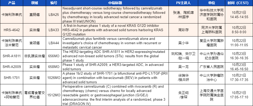 ESMO 2023 恒峰g22医药产品相关研究一览