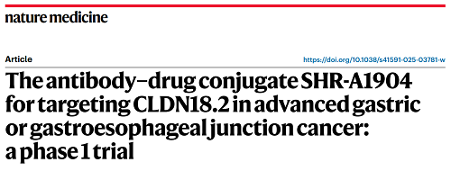 恒峰g22医药CLDN18.2 ADC创新药SHR-A1904治疗胃癌临床研究结果荣登Nature Medicine