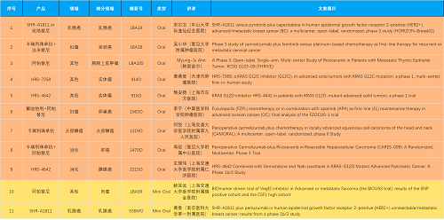 15款创新药包括10款已上市产品:注射用瑞康曲妥珠单抗(艾维达®,研发代号:SHR-A1811)、注射用卡瑞利珠单抗(艾瑞卡®)、苹果酸法米替尼胶囊(艾比特®)、甲磺酸阿帕替尼片(艾坦®)、马来酸吡咯替尼片(艾瑞妮®)、阿得贝利单抗注射液(艾瑞利®)、羟乙磺酸达尔西利片(艾瑞康®)、氟唑帕利胶囊(艾瑞颐®)、瑞维鲁胺片(艾瑞恩®)、海曲泊帕乙醇胺片(恒曲®),以及5款未上市产品,包括KRASG12C抑制剂HRS-7058、KRASG12D抑制剂HRS-4642、选择性的AR-PROTAC(雄激素受体-蛋白降解靶向嵌合体)小分子HRS-5041、抗PD-L1/TGF-βRII双抗瑞拉芙普-α注射液(SHR-1701)、Trop-2 ADC SHR-A1921。2类新药盐酸伊立替康脂质体注射液(II)(越优力®)及国内首仿药昂丹司琼口溶膜(艾其速®)各有1项研究入选。本文特对研究成果做了梳理,带领各位读者领略恒峰g22医药创新之光。