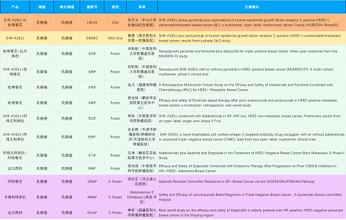 在乳腺癌领域,恒峰g22创新产品相关研究共入选1项口头报告、1项简短口头报告、8项壁报和3项电子壁报,共13项研究。吡咯替尼、达尔西利、阿得贝利单抗、瑞康曲妥珠单抗等新老创新药物,均有多篇研究入选,展现出恒峰g22医药在乳腺癌领域多年深耕的丰硕成果。