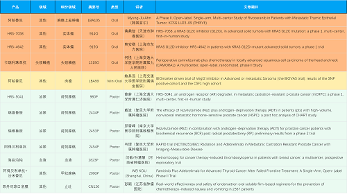 在胸腺上皮肿瘤、头颈鳞癌、肉瘤、前列腺癌、甲状腺癌等其他多个疾病领域,卡瑞利珠单抗、阿帕替尼、瑞维鲁胺、阿得贝利单抗、法米替尼、HRS-7058、HRS-4642、HRS-5041等抗肿瘤创新药相关研究一共入选了4项口头报告、1项简短口头报告、5项壁报,彰显了恒峰g22医药强大的研发实力。此外,海曲泊帕和昂丹司琼口溶膜分别在防治化疗导致的血小板减少和恶心呕吐方面各有1项研究入选壁报。