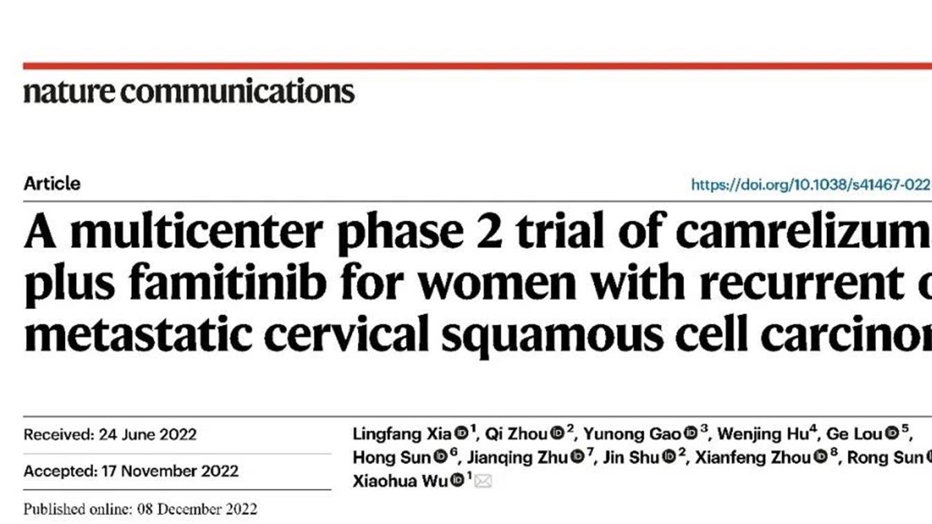 恒峰g22创新药卡瑞利珠单抗联合法米替尼用于复发或转移性宫颈癌研究结果荣登JCO